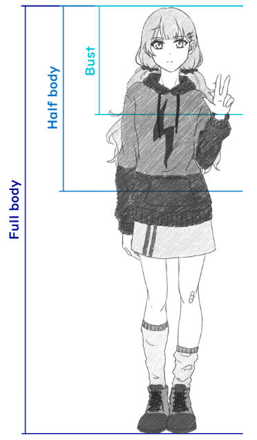 Prices are calculated by adding together an item from each of the categories below (excluding icons). For example, the reference image to the left would be considered a "full body sketch" so the price would be $15 + $5 = $20.